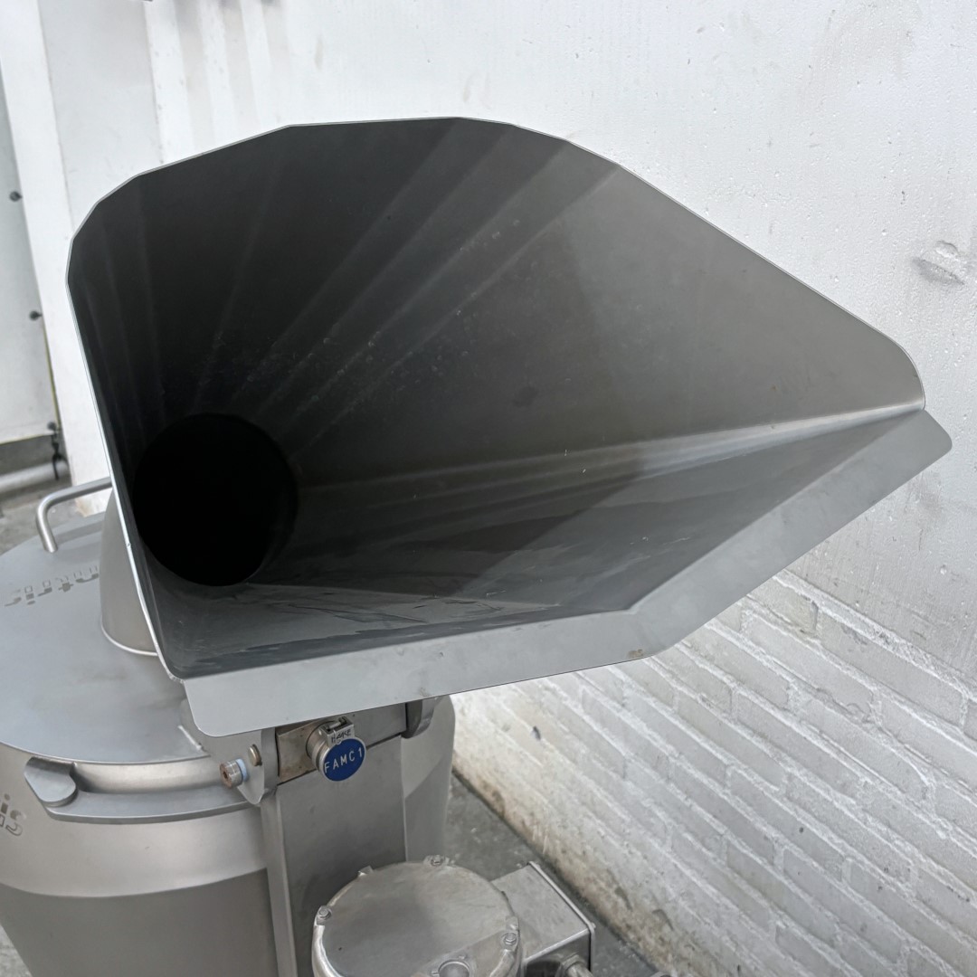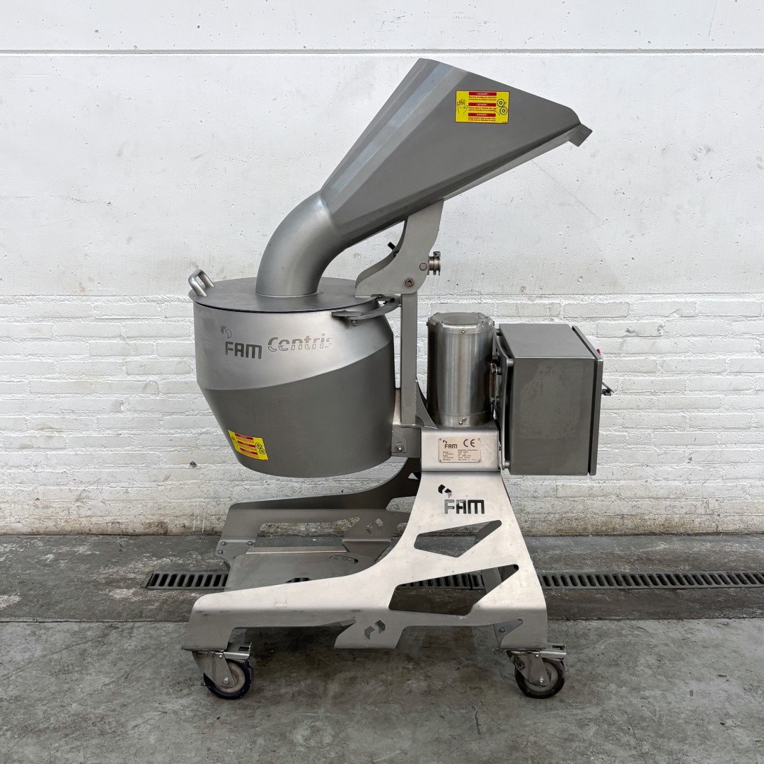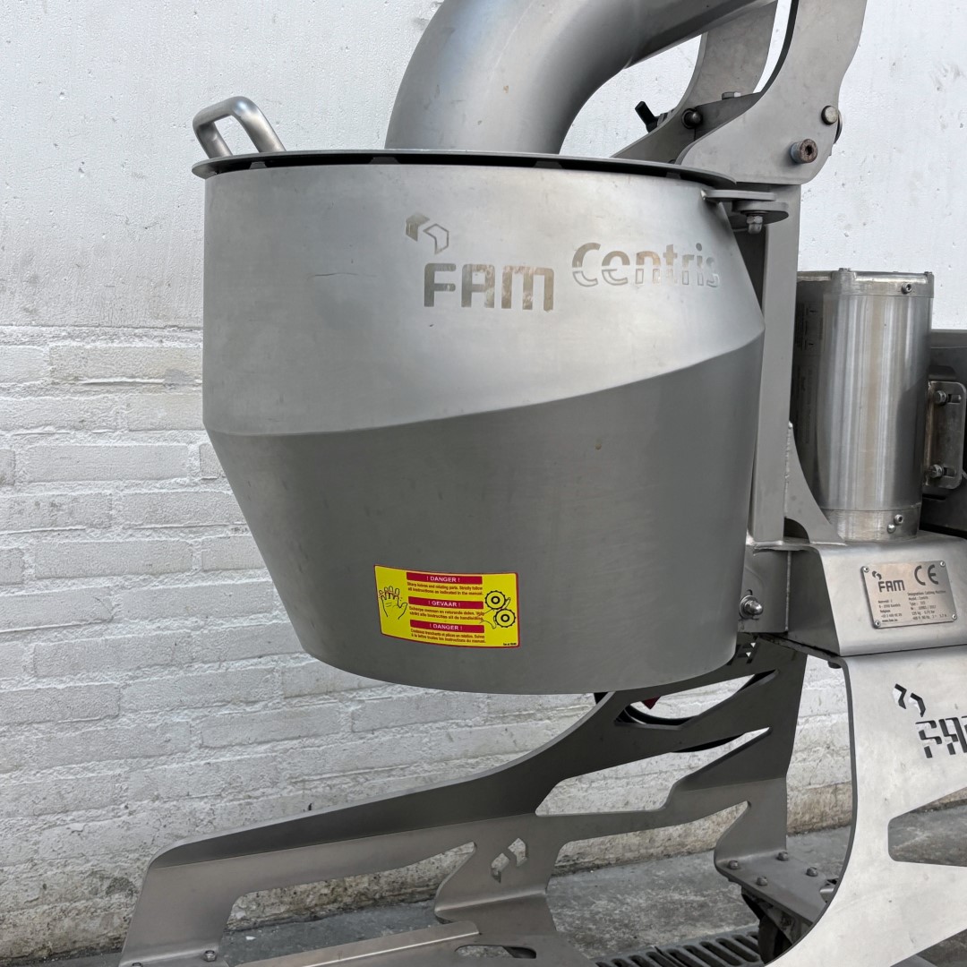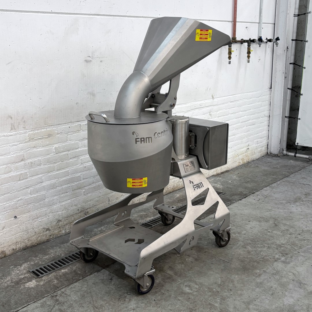 Krajalnica FAM Centris 315 została specjalnie opracowana dla przemysłu owocowo-warzywnego. Ta kompaktowa, mobilna krajalnica jest w stanie kroić różnego rodzaju warzywa i owoce. Maszyna wyposażona jest w głowicę tnącą z 12 stanowiskami, która precyzyjnie i z dużą prędkością przetwarza produkty o wymiarze do 100 mm. Higieniczna konstrukcja umożliwia szybkie i łatwe czyszczenie. Maszyna jest w całości wykonana ze stali nierdzewnej. Wydajność produkcyjna: 1500 kg/h (w zależności od produktu, wielkości krojenia i podawania) Rodzaje cięcia: płaskie, faliste lub w kształcie litery V plastry / paski w kształcie litery V, paski owalne, półksiężycowate, paski Głowica tnąca w zestawie: 4 mm Wysokość podawania: 1400 mm Wysokość wylotu: 560 mm Napięcie: 400 V (3+N, 50 Hz) Moc: 0,75 kW Waga: 160 kg Rok produkcji: 2017 Wymiary maszyny (SxGxW): 1100 x 630 x 1540 mm