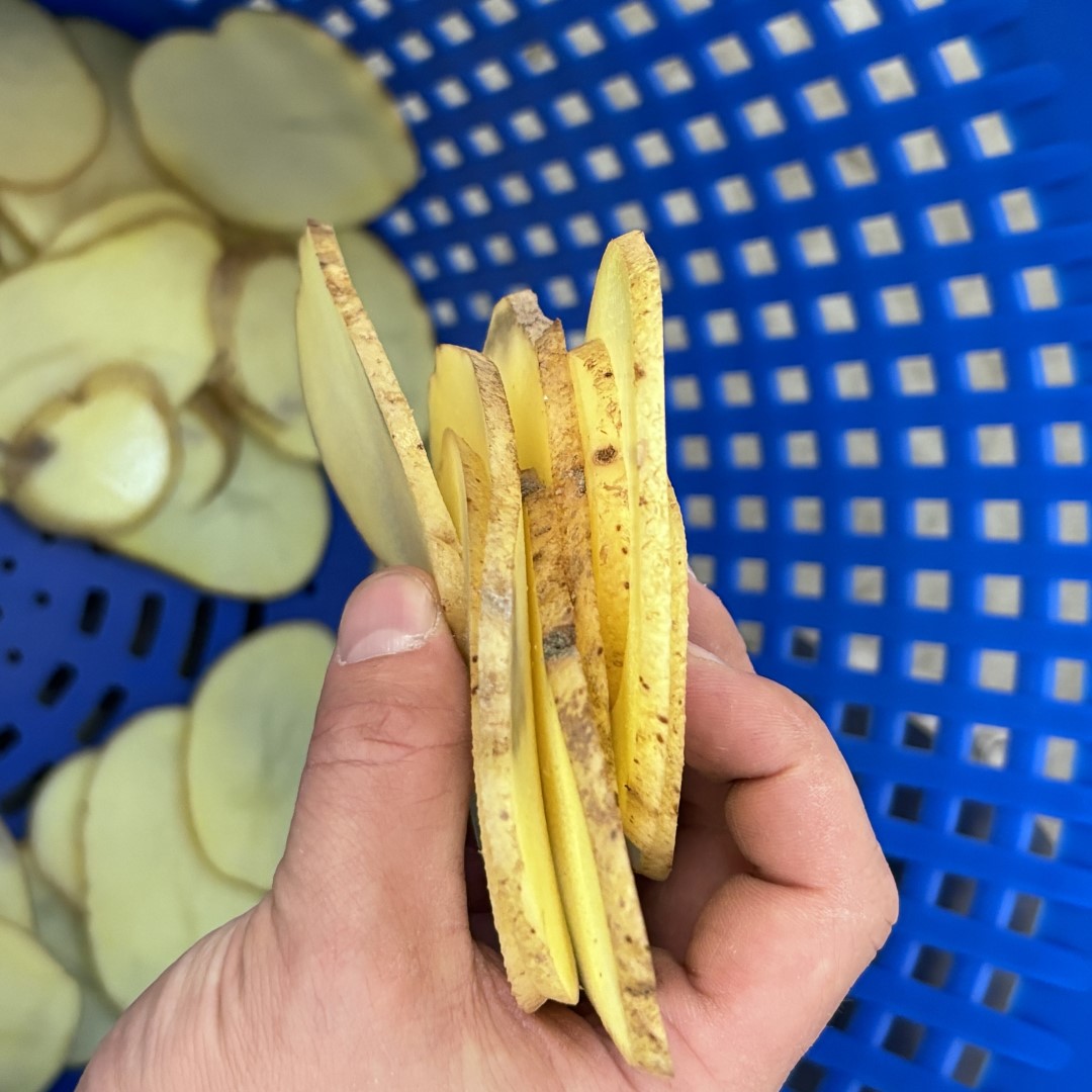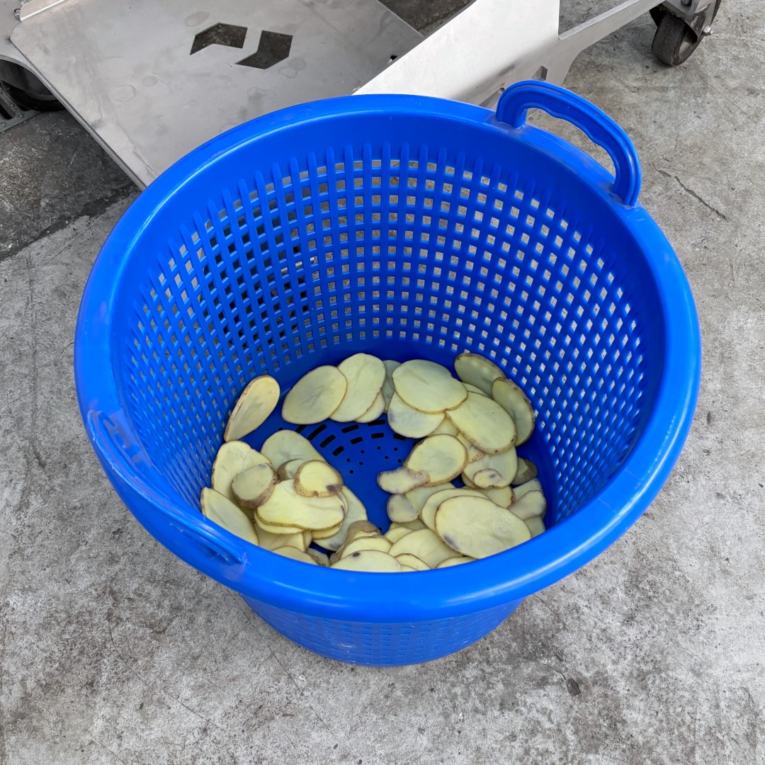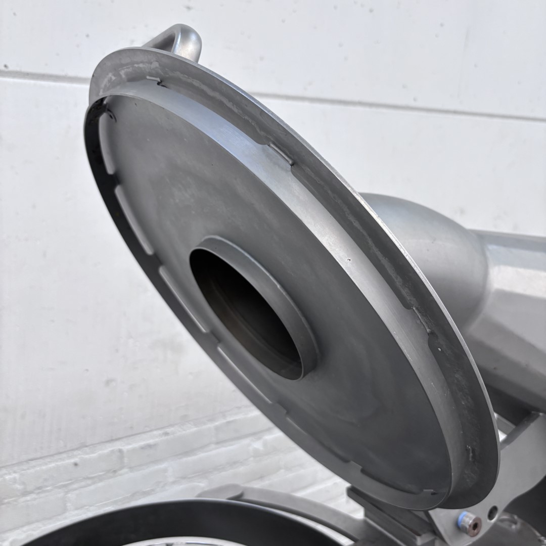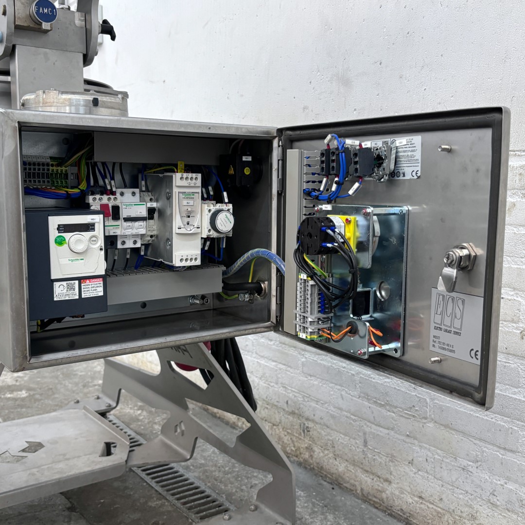 Krajalnica FAM Centris 315 została specjalnie opracowana dla przemysłu owocowo-warzywnego. Ta kompaktowa, mobilna krajalnica jest w stanie kroić różnego rodzaju warzywa i owoce. Maszyna wyposażona jest w głowicę tnącą z 12 stanowiskami, która precyzyjnie i z dużą prędkością przetwarza produkty o wymiarze do 100 mm. Higieniczna konstrukcja umożliwia szybkie i łatwe czyszczenie. Maszyna jest w całości wykonana ze stali nierdzewnej. Wydajność produkcyjna: 1500 kg/h (w zależności od produktu, wielkości krojenia i podawania) Rodzaje cięcia: płaskie, faliste lub w kształcie litery V plastry / paski w kształcie litery V, paski owalne, półksiężycowate, paski Głowica tnąca w zestawie: 4 mm Wysokość podawania: 1400 mm Wysokość wylotu: 560 mm Napięcie: 400 V (3+N, 50 Hz) Moc: 0,75 kW Waga: 160 kg Rok produkcji: 2017 Wymiary maszyny (SxGxW): 1100 x 630 x 1540 mm