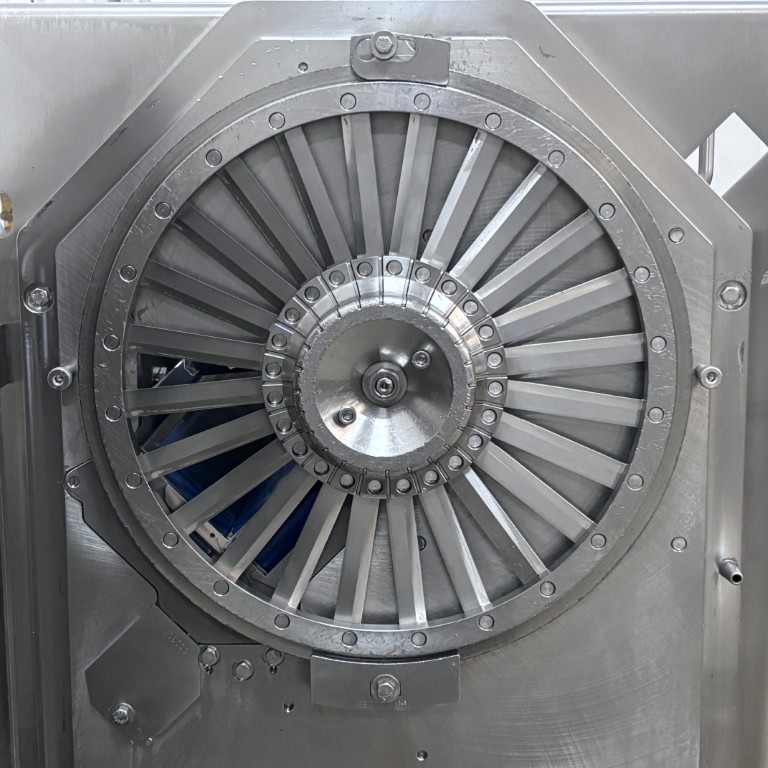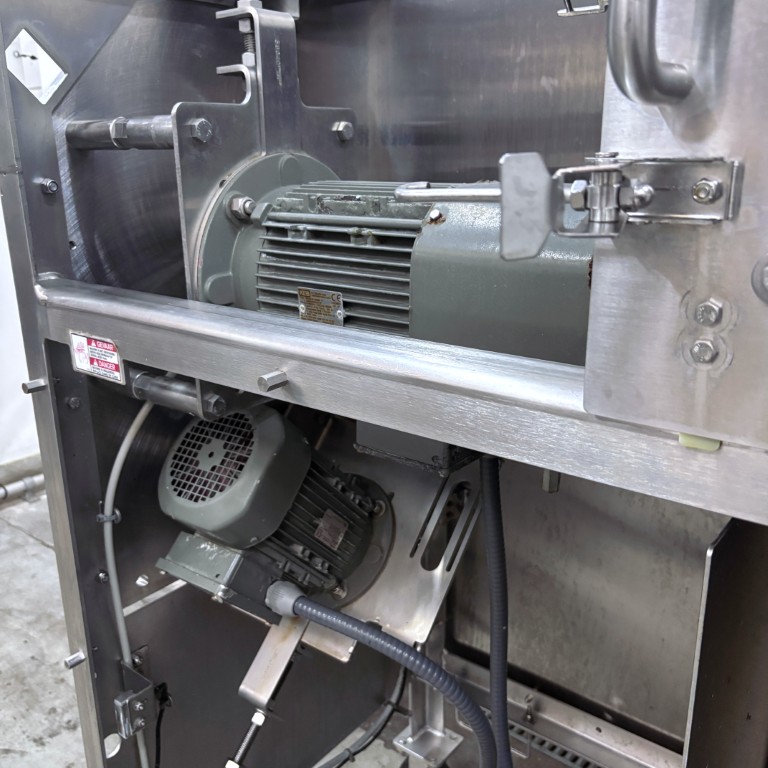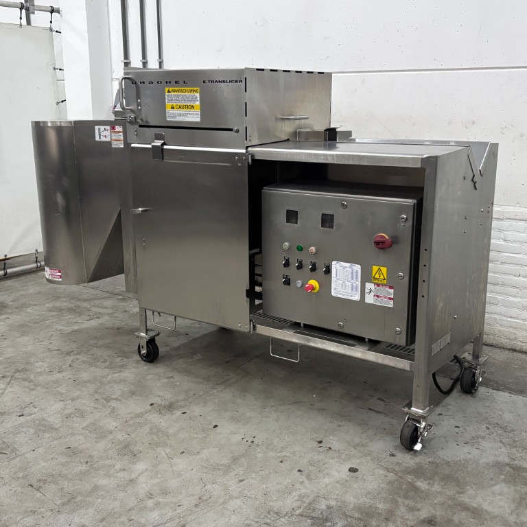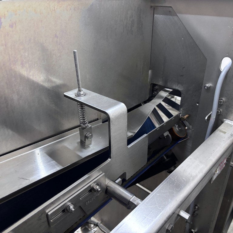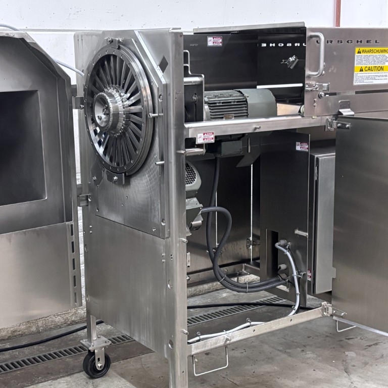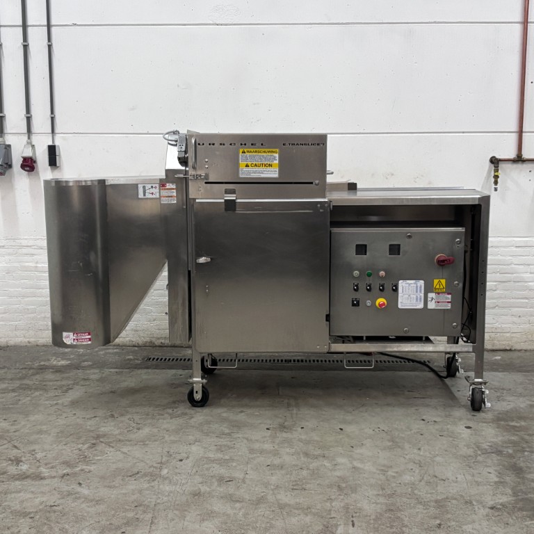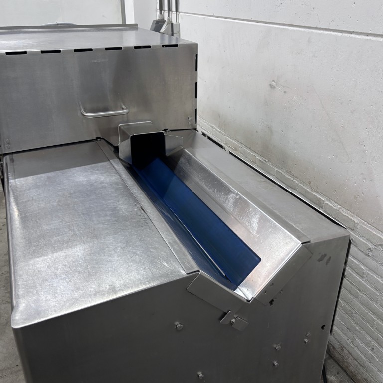 Liczba, rozmieszczenie, kąt oraz rodzaj noży są dostosowane do koła tnącego i prędkości taśmy, co bezpośrednio wpływa na wielkość uzyskiwanych plastrów. Koła kombinowane, wyposażone zarówno w noże tnące, jak i julienne, umożliwiają produkcję drobnych wiórków. Krajalnica taśmowa Urschel E-TRS jest łatwa w czyszczeniu i spełnia surowe wymogi higieniczne obowiązujące w przemyśle przetwórstwa owocowo-warzywnego. Stanowi niezawodne i wydajne rozwiązanie dla firm zajmujących się przetwarzaniem warzyw i owoców, poszukujących elastycznej, szybkiej i precyzyjnej technologii cięcia do swoich linii produkcyjnych. Dane techniczne: – Zakres grubości cięcia (koło standardowe): 0,8 – 76,2 mm (cięcia płaskie lub faliste); – Zakres cięcia julienne: 12,7 × 12,7 mm – 50,8 × 50,8 mm; – Zakres cięcia MicroSlice: 0,5 – 6 mm; – Wysokość podajnika: 1240 mm; – Wysokość wylotu: 375 mm; – Zasilanie: 400 V (3+N, 50 Hz); – Moc: 2,95 kW; – Waga: 584 kg; – Rok produkcji: 2015; – Wymiary maszyny w mm (SxGxW): 2560x897x1569 mm