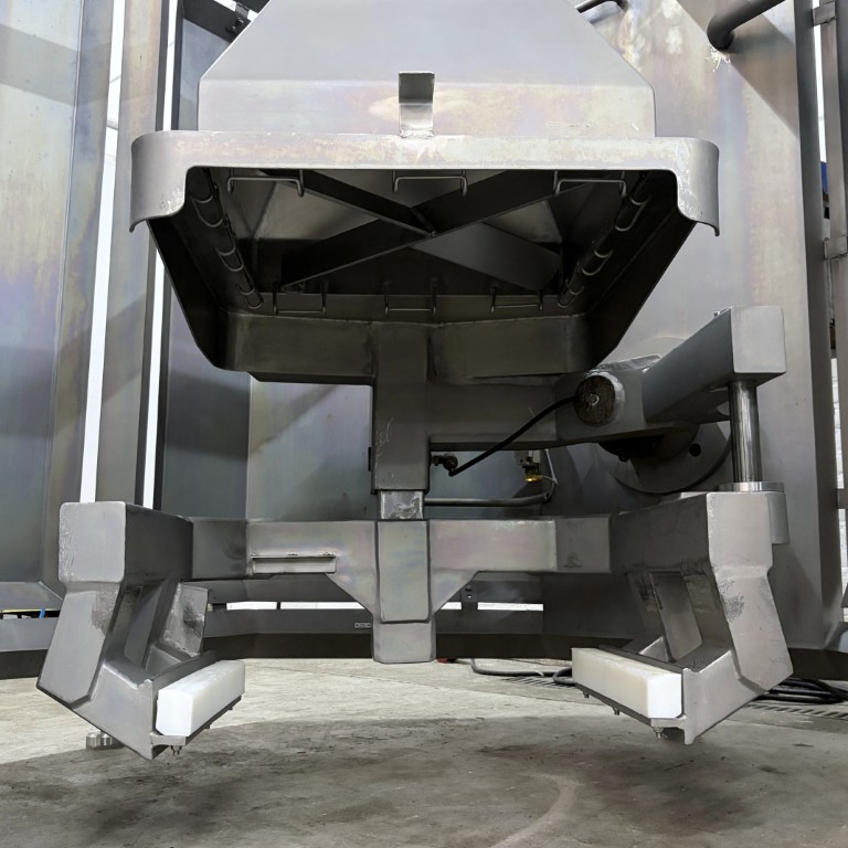 Syspal TT100 to przemysłowy mieszalnik do cymbrów, przeznaczony do efektywnego mieszania, marynowania produktów spożywczych w wózkach normowanych 200 L. Urządzenie wykorzystuje delikatny, beznożowy system mieszania z dwukierunkową rotacją, co pozwala zachować strukturę wrażliwych produktów. Wykonane ze stali nierdzewnej, spełnia wysokie standardy higieniczne i bezpieczeństwa oraz oferuje programowalne sterowanie HMI.